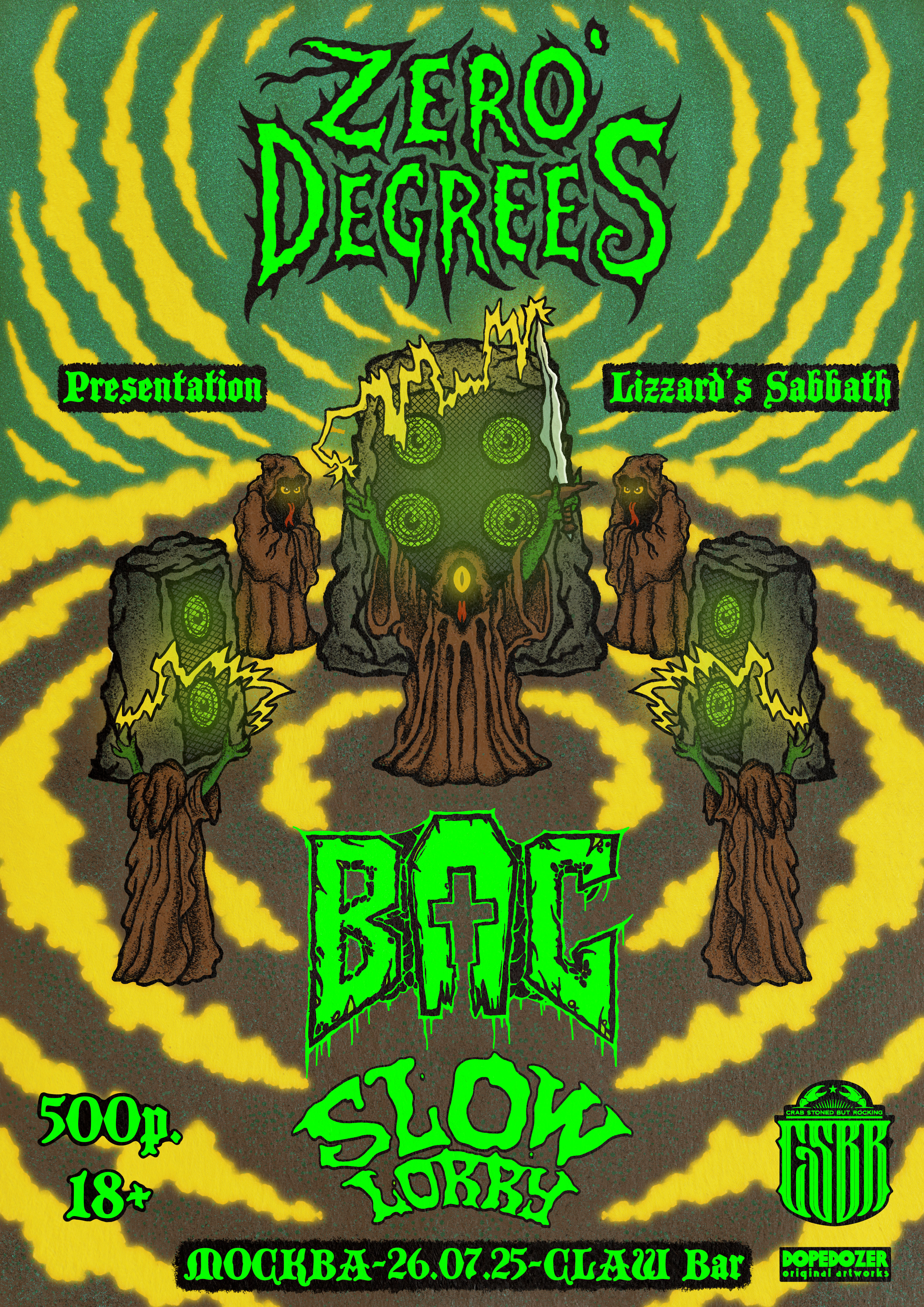 26 июля, CLAW BAR — станет пристанищем гипнотических рифов. ZERO DEGREES совместно с ВПС и SLOW LORRY будут созывать ящерский шабаш в честь выхода дебютного альбома «Lizzards Sabbath», не пропусти такое фуззостояние!